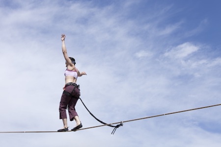 In preparation for this upcoming Mother’s Day, I’ve been reading a book about the tightrope walker who, in 1974, illegally, with the help of his friends and under the cover of night, slung a wire between the World Trade Center buildings in New York City and walked across it wearing dark tights and special slippers. He bounced, he twirled, he flaunted. A brazen, beautiful, reckless act. Symbolic. Seemingly impossible and therefore profound. He held a pole that he dipped to one side and then the other. A helicopter disturbed the wind patterns over his head and he did not fall. The poetic agency and metaphorical meat of this image is fleshed out by a series of magnificent linked stories in Colum McCann’s genius novel Let the Great World Spin, a book about freedom and grief, and how these two primal human experiences go together. The image itself is one of beauty and loss—a man balanced between his greatest moment of bodily freedom, just a feather-distance away from his fall, his death, the end.