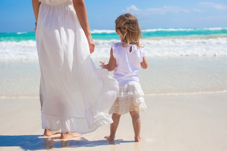 Gigi is most recently concerned about my hair. She wants me to have it cut and she has a very specific style in mind. On my nightstand, and in her room at her father’s house, is a picture of the two of us at the beach in San Diego when she was almost 2. We both love that picture, but for different reasons. I love it because it’s a mirror image of a similar photo of my mother and me when I was 2. Gigi loves it because I look “so young,” and she believes the length of my hair is key—that if I cut it I will magically look the way I did six years ago.