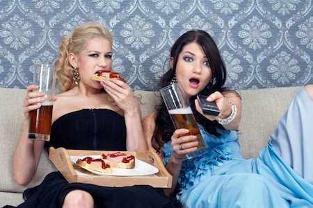 I love having dinner with my girlfriends, but on V-day, it feels like a consolation prize. It has that “you’re trying way too hard to show the world you don’t care” vibe. It seems, to me anyway, like a pity party. There’s a scene in the first “Sex and the City” movie where Carrie and Miranda, both painfully single due to being left at the altar and cheated on, respectively, have a disastrous V-day dinner that ends in tears and Carrie storming out. Melodramatic, yes. Highly enjoyable for those of us who always hated selfish, whiny Carrie? Check. But that scene also made me think of all the times I had dinner on “the day” with a girlfriend, or platonic male friend, and left feeling full of food yet empty, just wanting midnight to strike so it wouldn’t be the 14th anymore. Interesting that you never see two male pals out at dinner on V-day. Single men don’t seem to have the same need for consolation on this day, and that says a lot about gender and our culture right there, no?